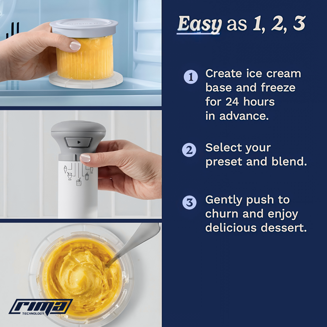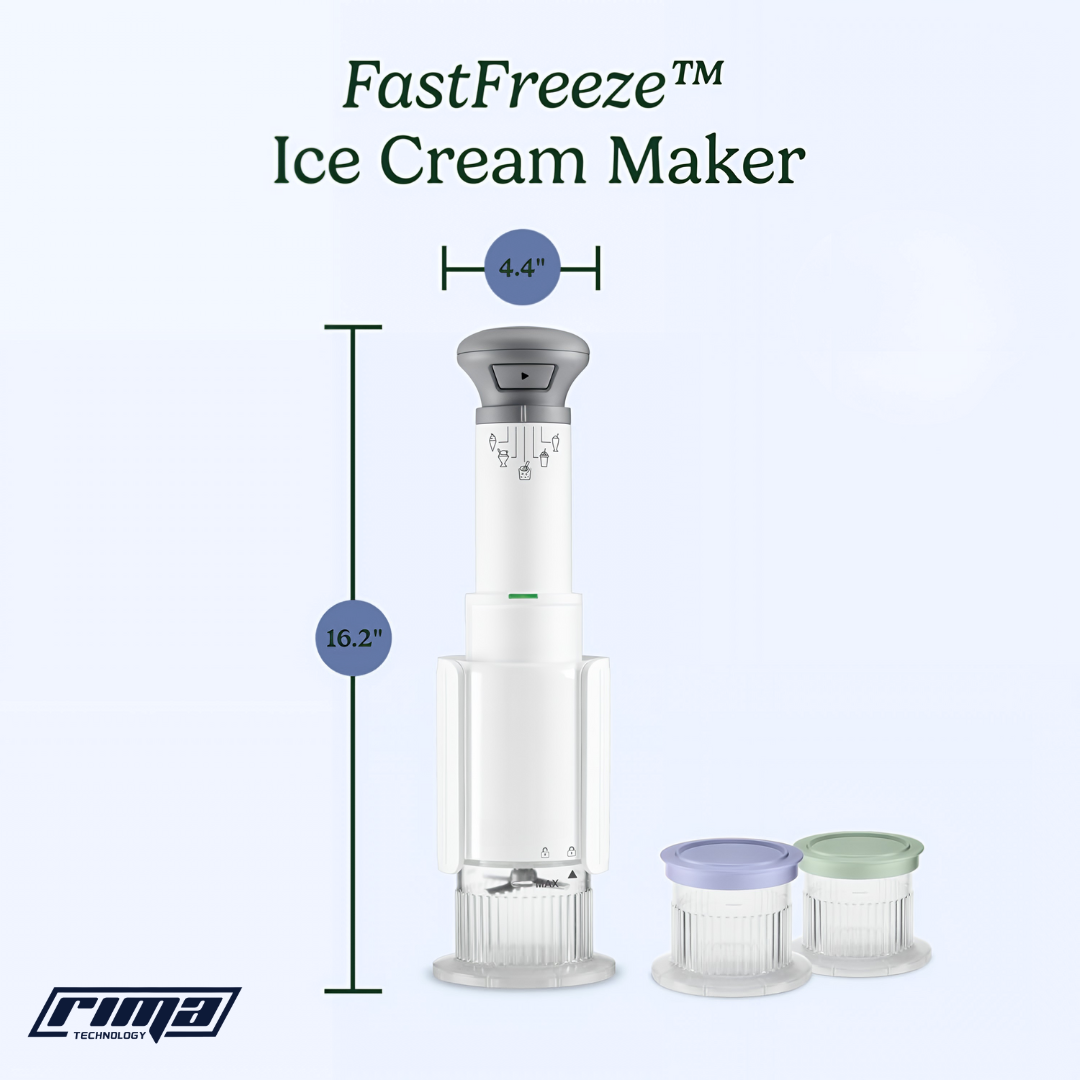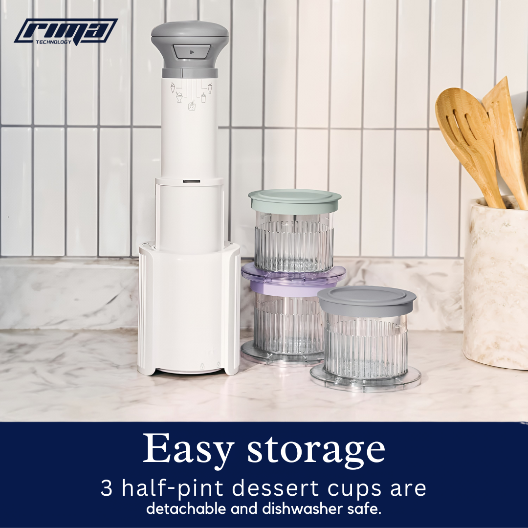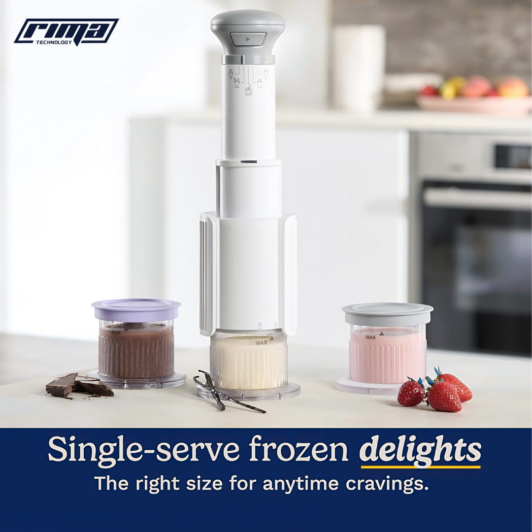 The Rima Arctic™ combines rapid-freeze technology with smart design — delivering perfectly frozen desserts in minutes without pre-freezing bowls or waiting hours. Compact, efficient, and beautifully designed, it’s a stylish addition to any modern kitchen.