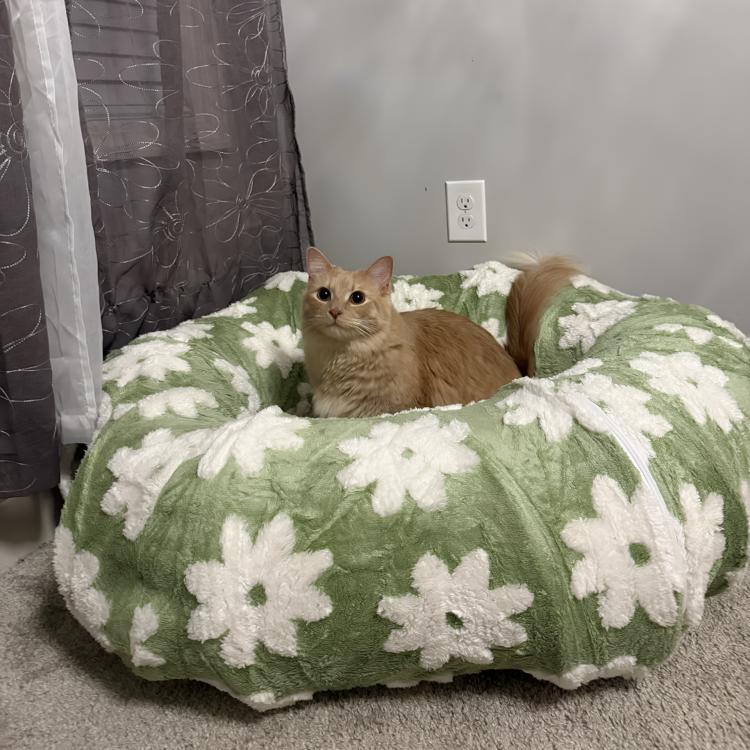 The Rima CatPath has completely won over my fluffy boy! As soon as I set it down, he hopped right in and started purring. The plush, flower-patterned fabric is unbelievably soft and supportive — it looks beautiful in my room too. It’s the perfect mix of comfort and style, and I love how easy it is to clean and move around. He naps longer, plays more, and honestly seems happier. Highly recommended for any cat who loves cozy lounging!