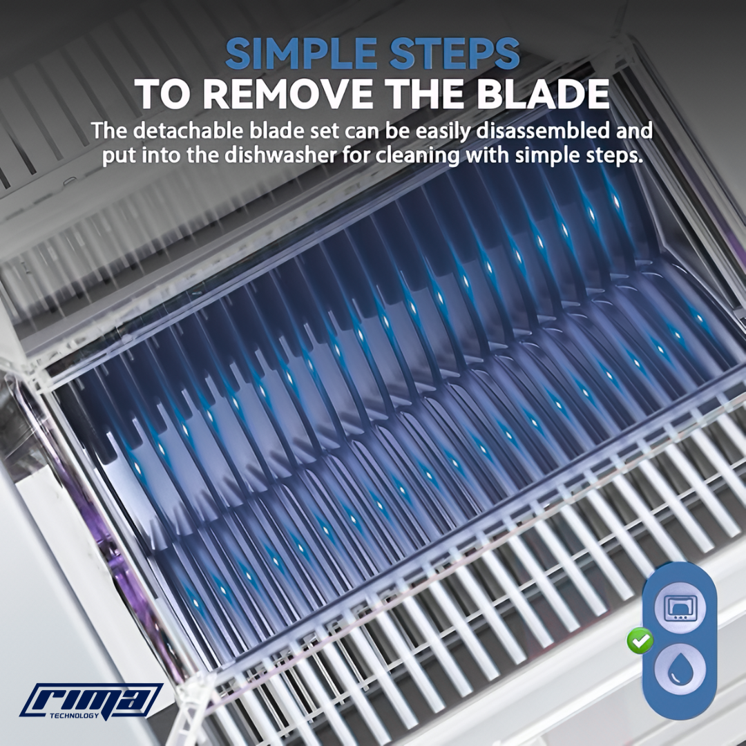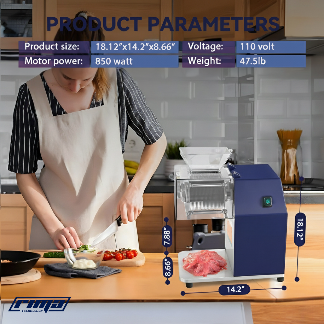 The Rima ChefCut™ combines industrial performance with smart design — featuring high-speed precision blades, durable stainless-steel construction, and easy-clean components. It’s compact yet powerful, bringing commercial-grade cutting to any kitchen.