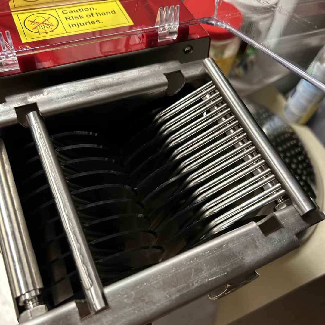 This cutter performs like the heavy-duty machines I’ve used in restaurant kitchens. The stainless-steel blades stay sharp, and every slice is precise and even. I love how sturdy it feels — nothing about it seems cheap. It’s compact enough for my home kitchen but strong enough for serious prep work. Easily one of my best purchases this year!