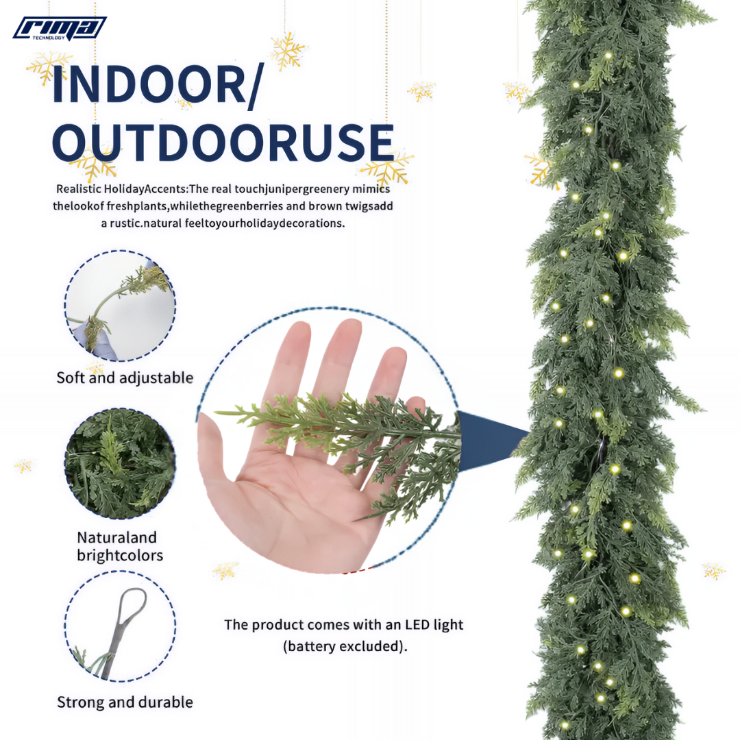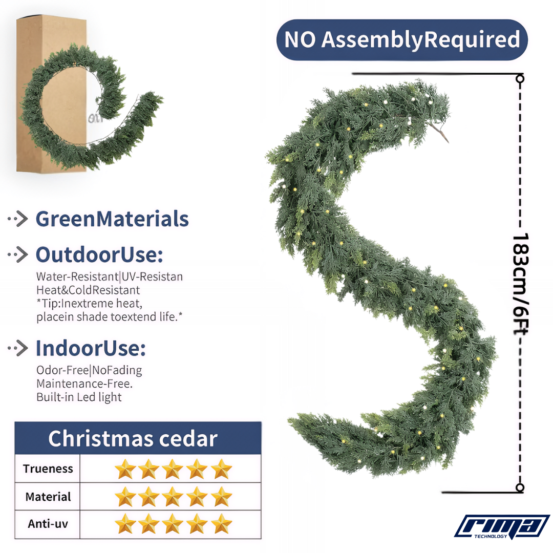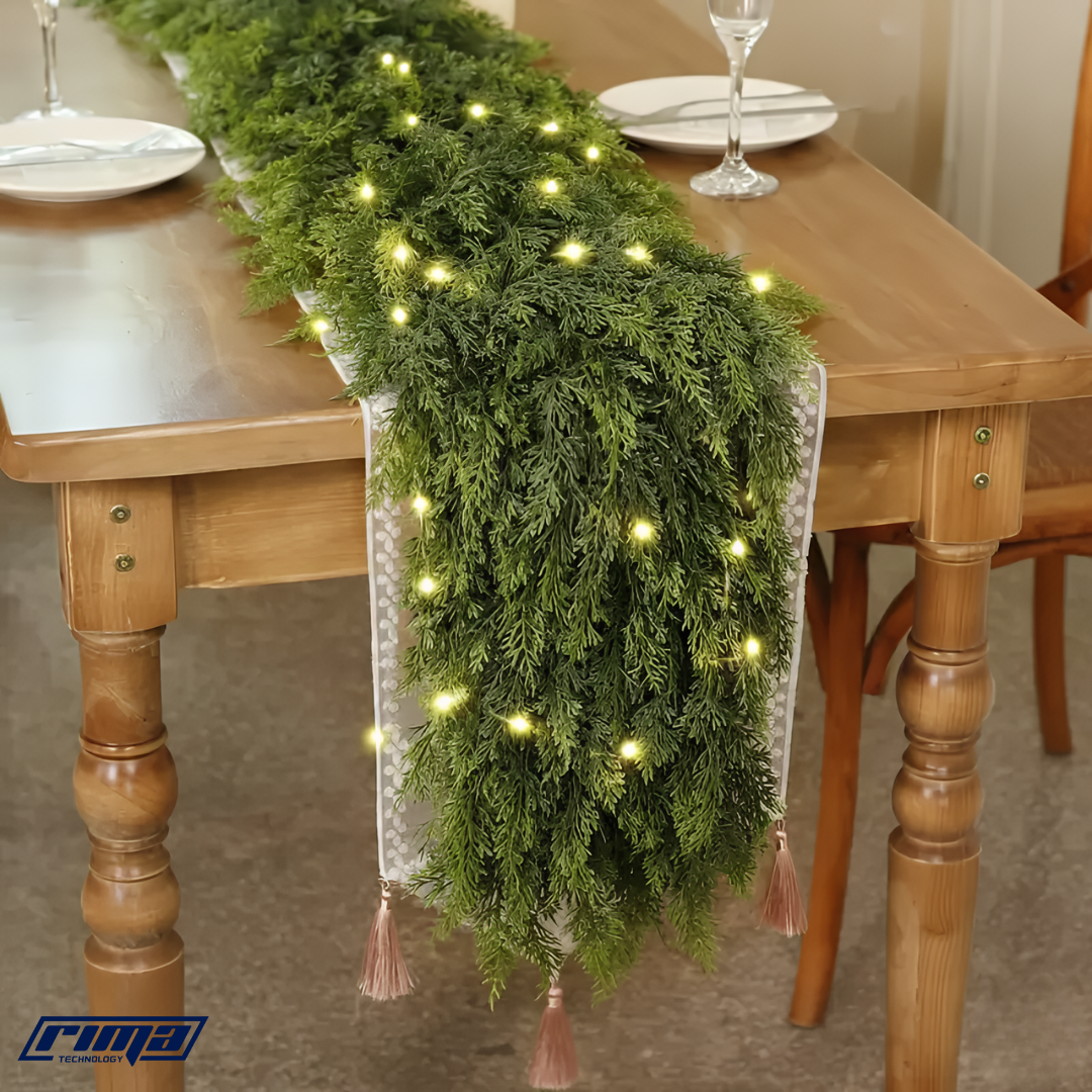 The Rima EverLume™ blends lifelike cedar pine with soft, glowing LED lights to create an enchanting ambiance indoors or outdoors. With 140 full pine tips and a flexible design, it can be draped, hung, or styled in endless ways — from mantles and tables to doorways and railings.