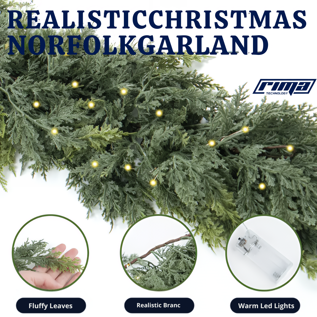 The Rima EverLume made my fireplace mantle look like a magazine photo! The lights shine softly, creating such a warm, inviting glow. I love how realistic the pine tips are — full, soft, and detailed. Setup took minutes, and it drapes beautifully without shedding. It’s durable, classy, and truly captures the magic of the season.