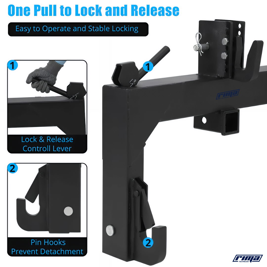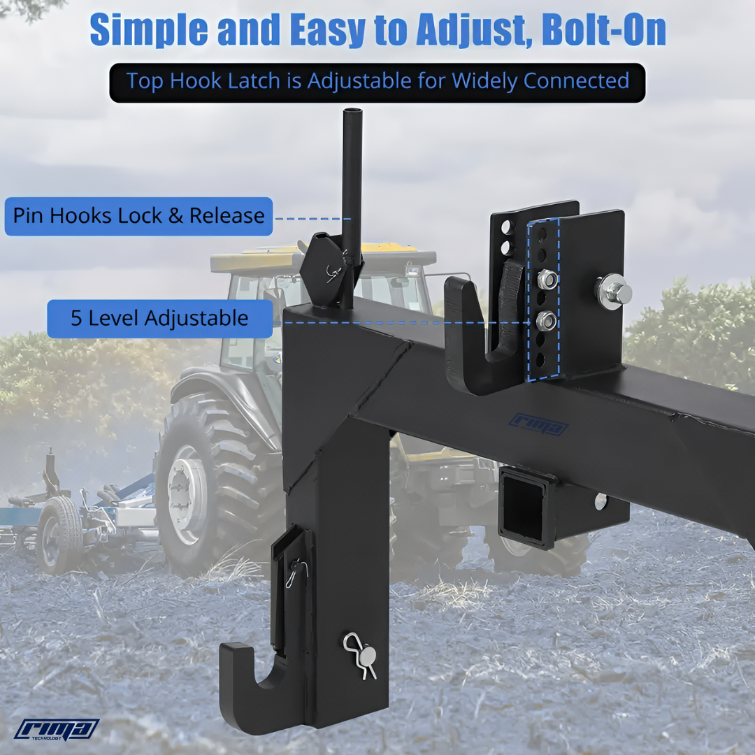 The Rima FieldMate™ combines a quick-connect 3-point hitch system, 3000 lbs lifting capacity, and rugged build quality — ensuring both power and convenience in one compact design.