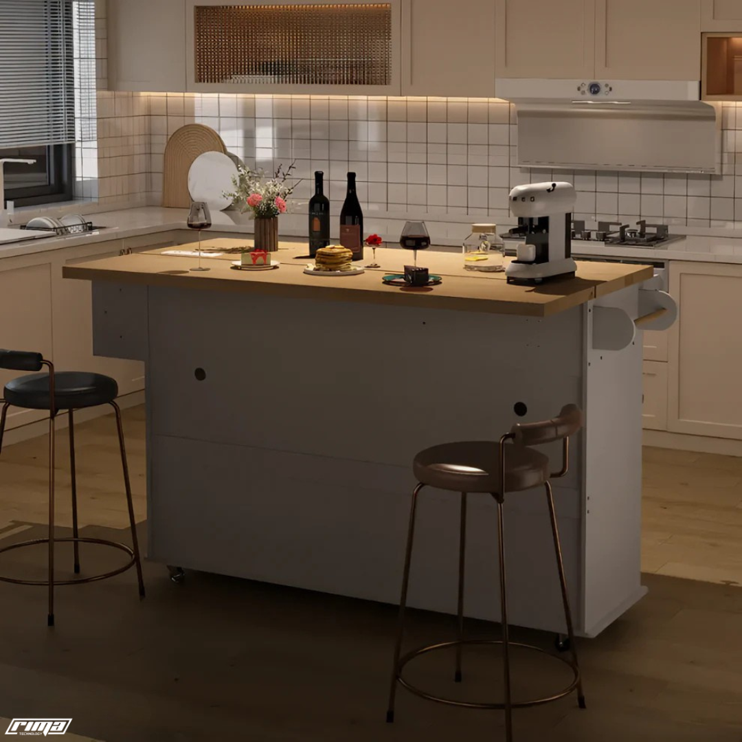 Perfect for homeowners, chefs, and apartment dwellers who value both style and efficiency. Whether you’re prepping meals, hosting guests, or needing extra counter space, the Rima Nexus™ adapts seamlessly to any kitchen environment.