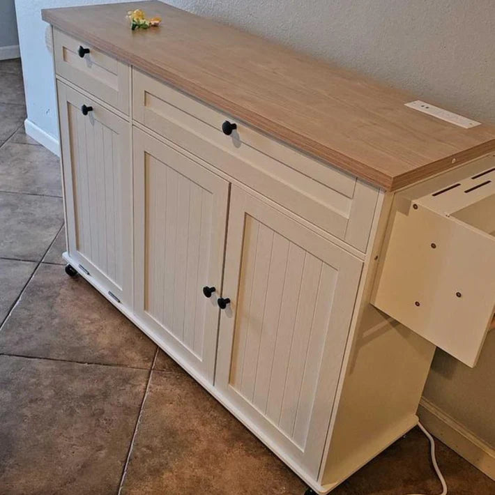 The Rima Nexus in white is absolutely stunning! The clean design with the light wood top gives my kitchen a bright, modern touch. I set it up as my coffee station, and it’s been a total game-changer — plenty of storage for mugs, pods, and supplies, plus the power outlet makes it easy to plug in my espresso machine. The drawers glide smoothly, and the drop-leaf gives me extra counter space when I need it. It’s sturdy, elegant, and super functional. Definitely one of the best kitchen purchases I’ve made!