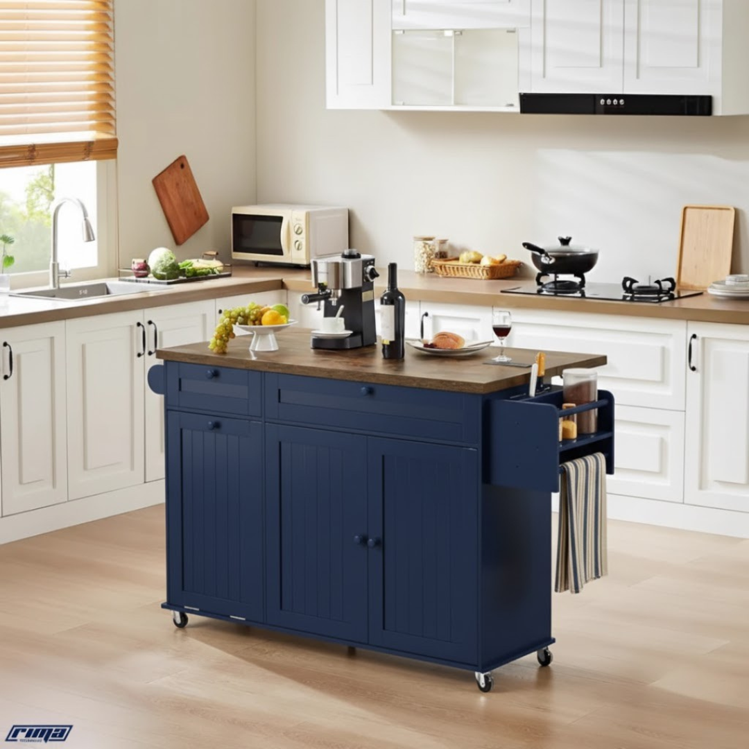 This kitchen island is a total game-changer. The Rima Nexus feels sturdy and well-built, and I love how smooth the drawers and cabinet doors are. It adds so much storage without taking up too much room. The wheels glide easily, and the drop-leaf makes it super versatile. It’s the ideal mix of beauty and practicality!