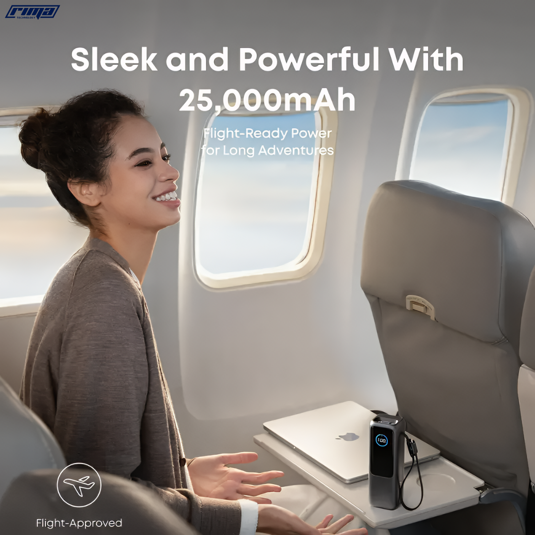 The RIMA PowerHub™ combines portability, power, and practicality like no other. With a massive 25,000mAh capacity, built-in cables, and multi-device fast charging, it delivers maximum energy efficiency in a compact, travel-friendly design.