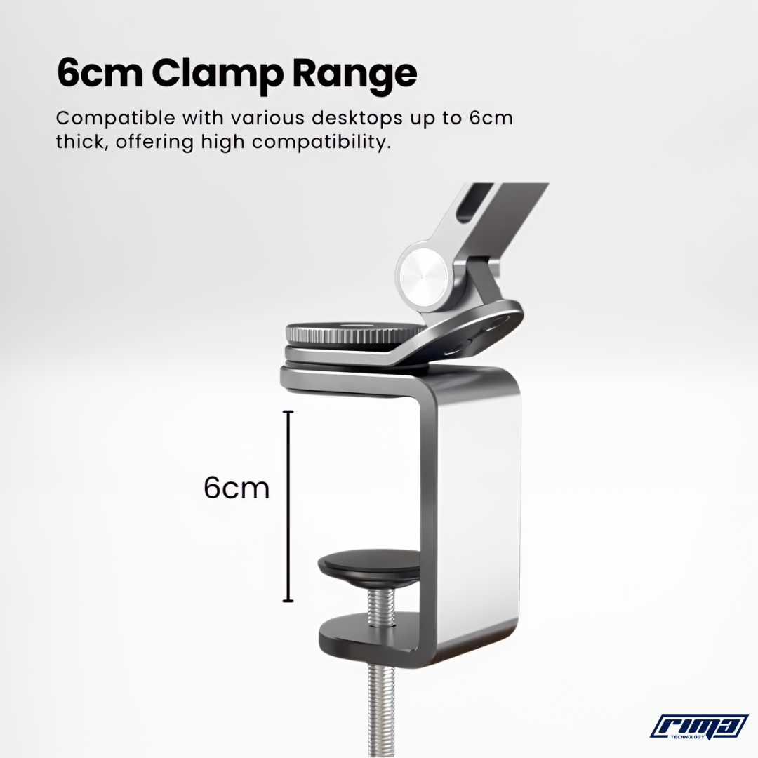 Built with a heavy-duty clamp and reinforced joints, the Rima ProArm™ stays firmly in place even during heavy use. Its vibration-free design ensures steady shots and stable support, perfect for both creative and professional environments.