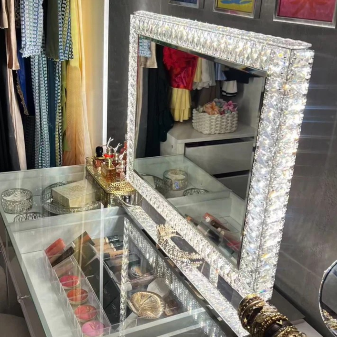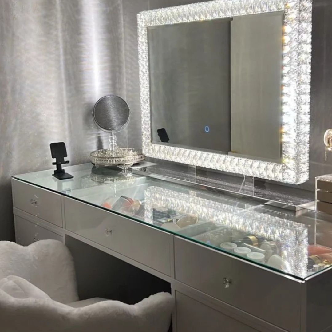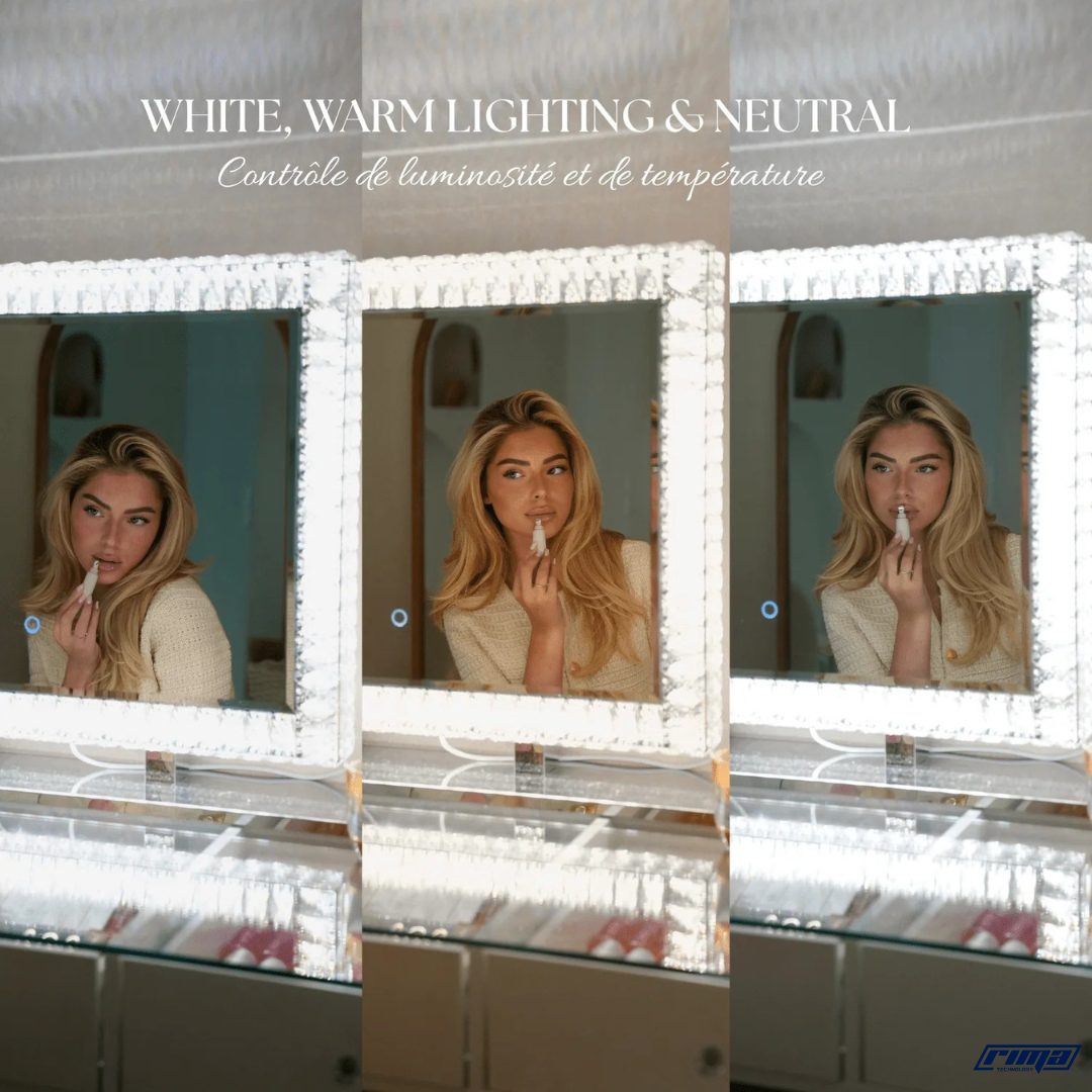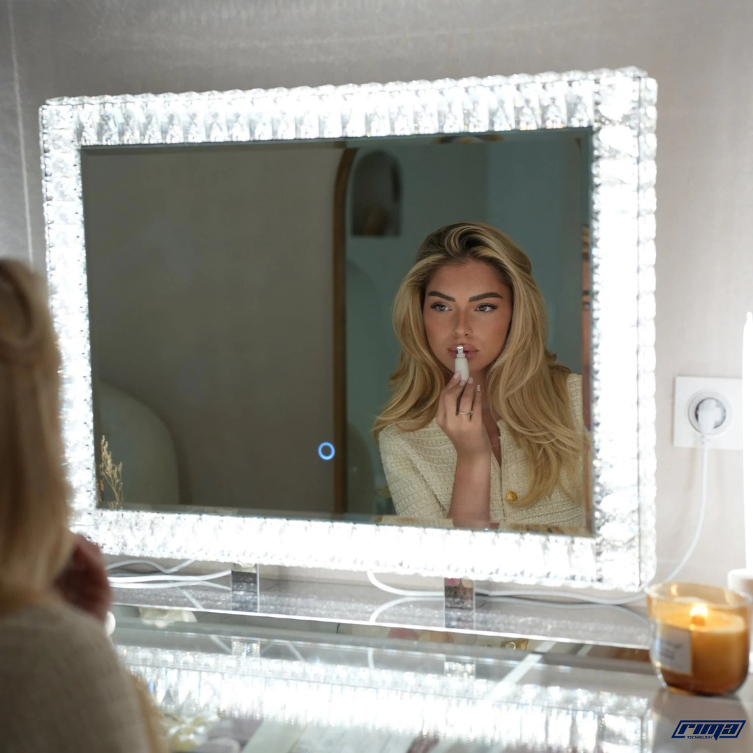 The Rima RadiantAura™ blends dazzling crystals with Hollywood-inspired LED illumination, creating a perfect balance of style, sophistication, and functionality — transforming any space into a glamorous retreat.