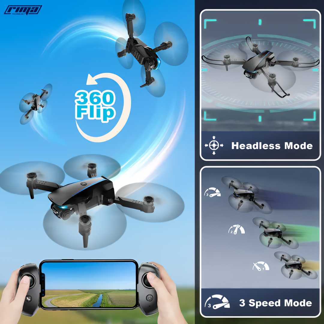 The Rima SkyView™ combines a 1080P HD camera with a stable hover, foldable mini design, and smart flight modes like trajectory flight and 3D flips — bringing professional-style performance to everyday users.