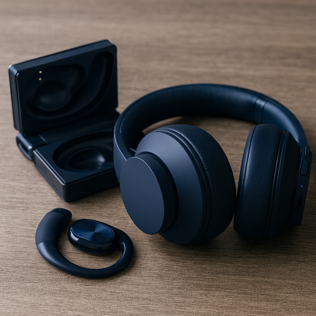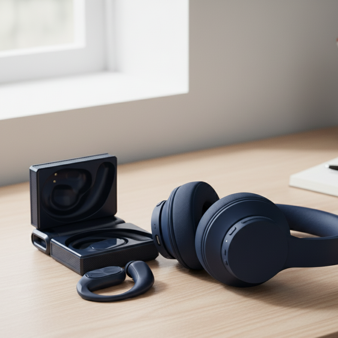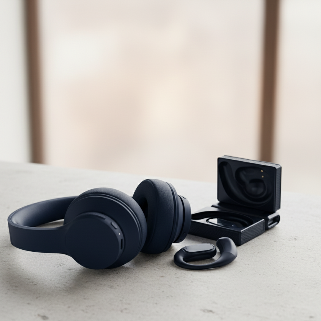 Switch seamlessly between over-ear headphones for immersive sound and compact wireless earbuds for on-the-go convenience. This versatile combo adapts to every situation — from focused work to active workouts.