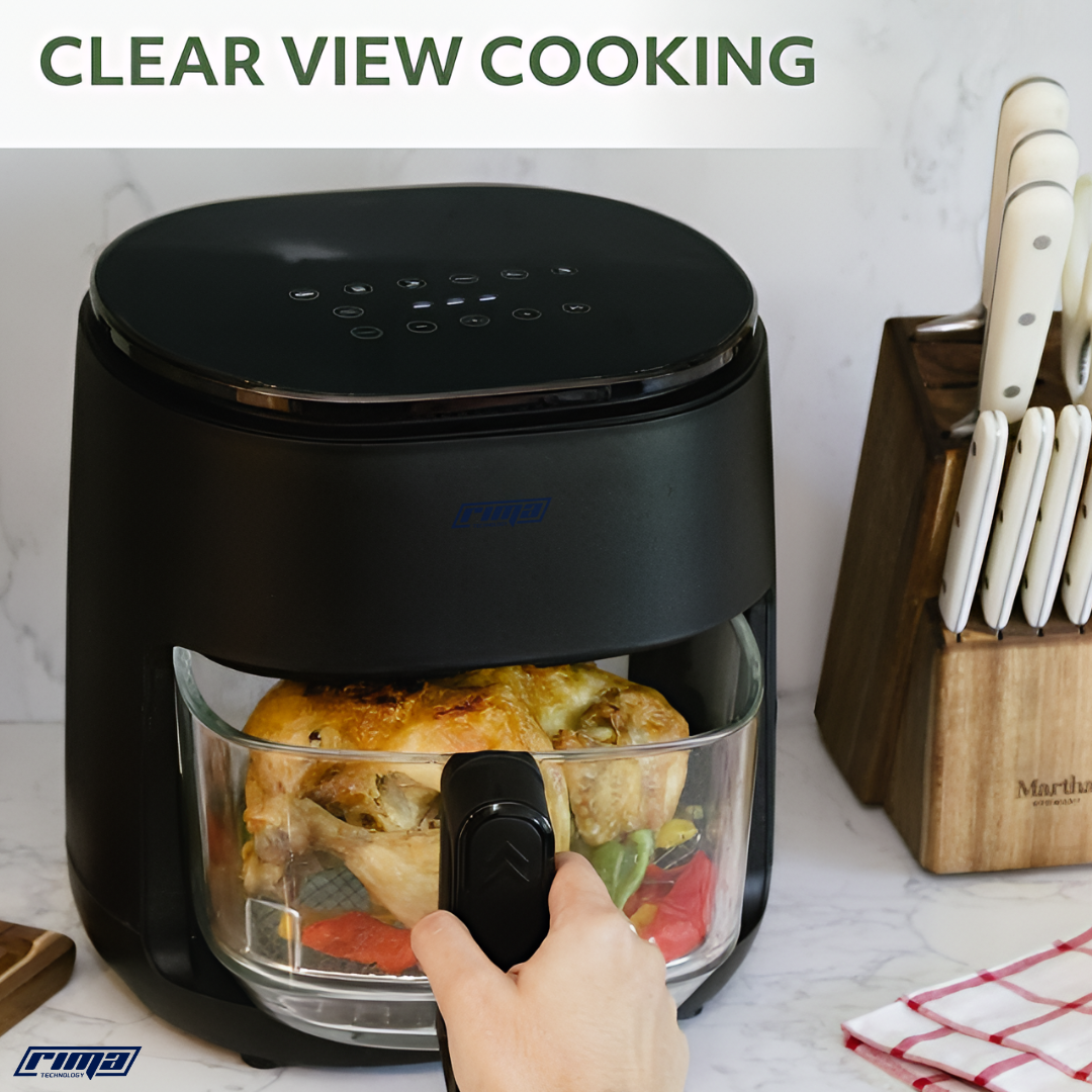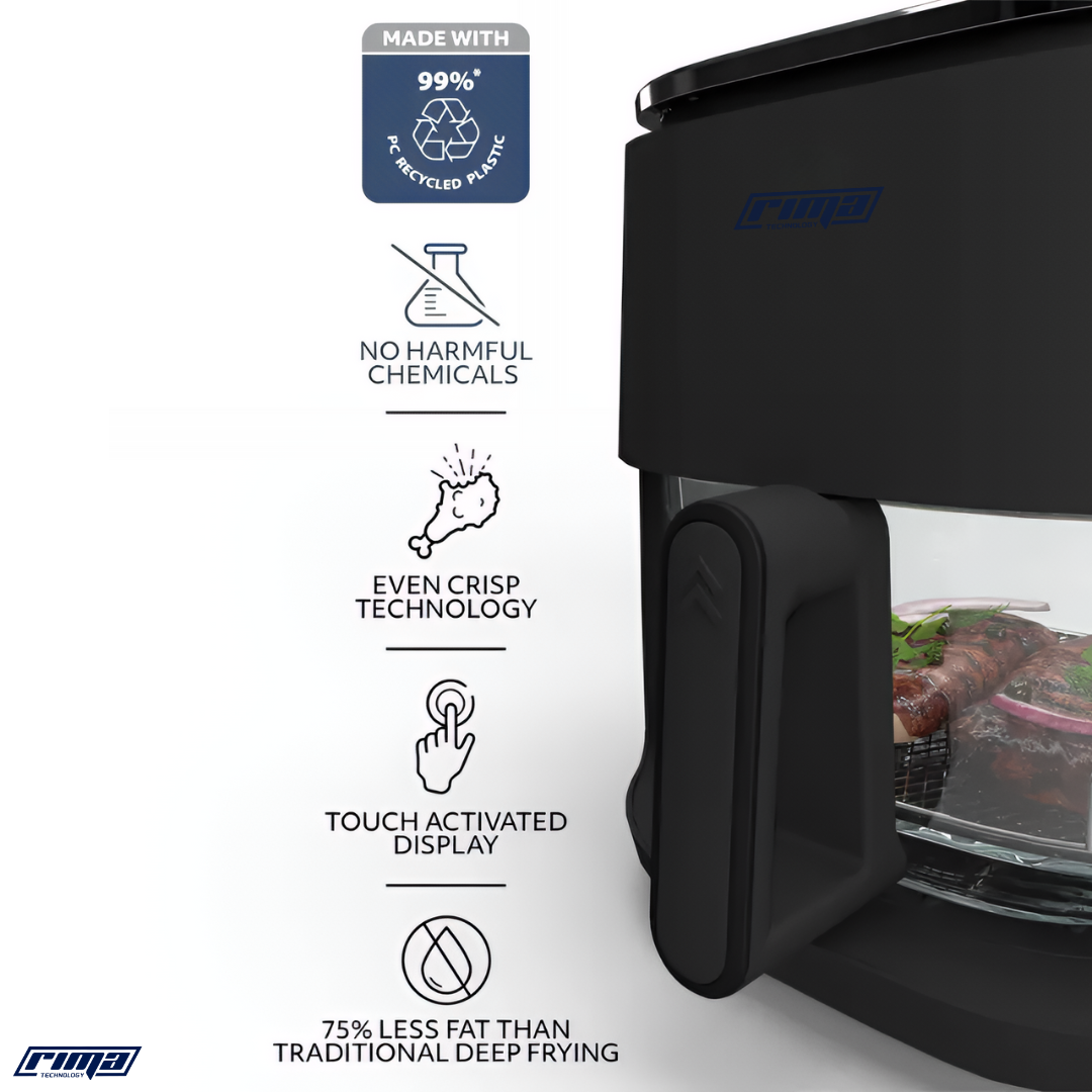 This Rima Vellora is such a sleek addition to my kitchen! I love how modern and compact it looks, and it cooks everything perfectly crisp without oil. The digital touchscreen makes it super easy to use, and the glass bowl lets me watch the food as it cooks — no more guessing! Cleaning is effortless, and it heats up really fast.